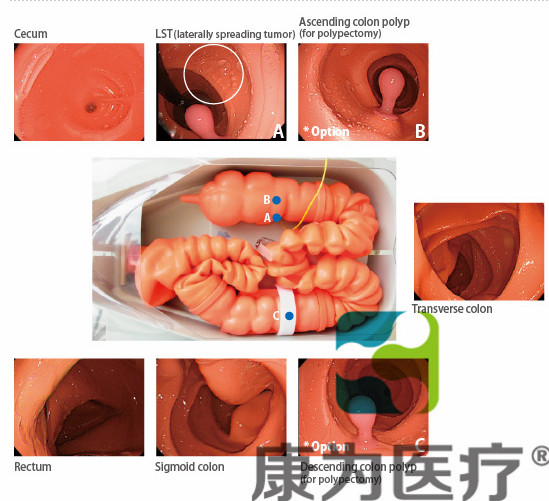 本款模型用來練習(xí)插入結(jié)腸鏡,辨識(shí)腸內(nèi)各個(gè)解剖標(biāo)志