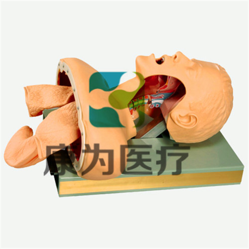 本模型為成年男性,形態(tài)逼真,包括頭、頸、胸部及真實大小的雙肺和肉色胃,解剖標(biāo)志明顯,便于操作定位