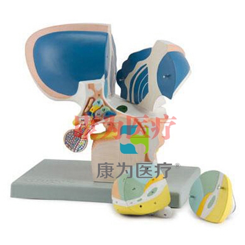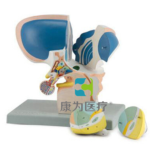 這四部分組成的模型,5倍自然大小,顯示了人類間腦:所有talamus主要部分,上丘腦,下丘腦和metathalamus。下丘腦核都顯示在不同的顏色,而丘腦分為兩部分可移動的,可分割,以顯示內(nèi)在的解剖