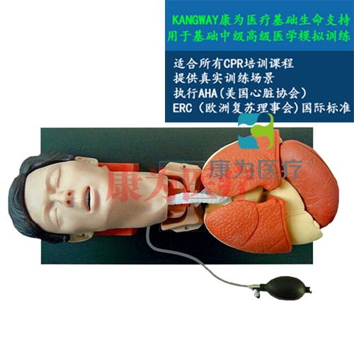可進行經(jīng)口、經(jīng)鼻氣管插管的操作訓(xùn)練,正確插入氣管,供氣雙肺膨脹;錯誤插入食道,供氣胃膨脹;