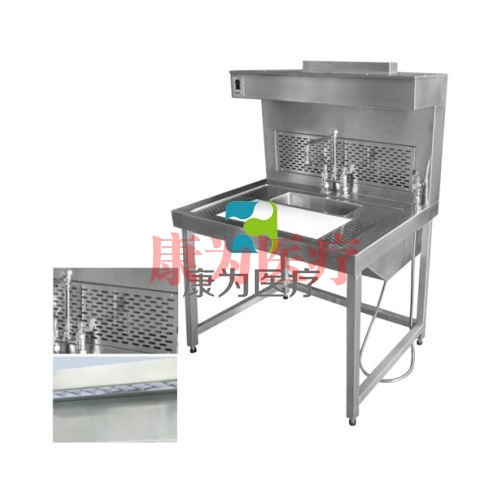 “康為醫(yī)療不銹鋼多孔板全功能解剖操作臺根據(jù)公安部一級示范刑事科學技術解剖室建設要求專門設計,執(zhí)行中華人民共和國公安部GA/T750-2008不銹鋼尸體解剖臺標準研制生產(chǎn)。采用不銹鋼材質(zhì)模壓成形,精工制作,耐酸耐堿,并具有抽風、解剖雙重功能,整體造型豪華大氣。