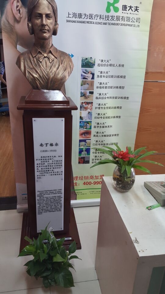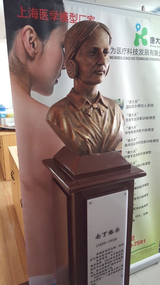 產(chǎn)品描述總高1850mm,雕像:原形取自倫敦博物館的南丁格爾塑像,成人半身胸像,青銅材質(zhì),高650mm;雕像架:座高1200mm,上臺面400*400mm,基座底512*512mm,中間立柱320*320mm;碑文:寬216,高970mm,材質(zhì)為亞克力標(biāo)牌
