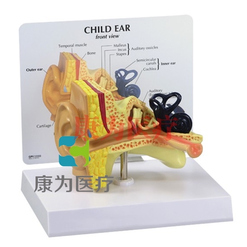 正常兒童耳模型說明:半圓形的運(yùn)河和內(nèi)耳的耳蝸; 聽覺小骨,中耳炎(中耳炎癥和模擬液體); 鼓膜,顳和張力鼓膜肌肉; 該模型還呈現(xiàn)了典型的兒童的水平咽鼓管。
