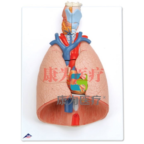 這款一流的教學(xué)模型展示了下列結(jié)構(gòu): 2部分咽喉(可拆卸) ,氣管與支氣管 ,2部分心臟(可拆卸) ,鎖骨下動(dòng)脈和靜脈,腔靜脈 ,主動(dòng)脈 ,肺動(dòng)脈 ,食道 ,2部分肺 ,橫膈膜置于基板上。