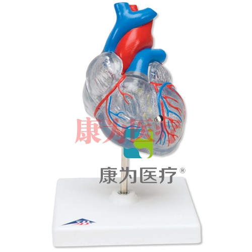 這款透明的心臟模型精細(xì)地展示了心臟各解剖結(jié)構(gòu),心室、心房、靜脈和主動(dòng)脈。前心壁可分解以顯示心腔和內(nèi)部瓣膜。另外還有完整的心傳導(dǎo)系統(tǒng)并用色彩標(biāo)明。特點(diǎn)為透明。置于基架上。