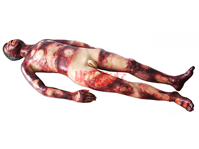 ●可實(shí)現(xiàn)的創(chuàng)傷功能:頭部出血傷口,可練習(xí)清創(chuàng)處理及結(jié)扎止血,左小腿及右手小指截肢可行包扎及各種創(chuàng)傷傷口示教,可行燒傷深度的識(shí)別和燒傷面積的估算