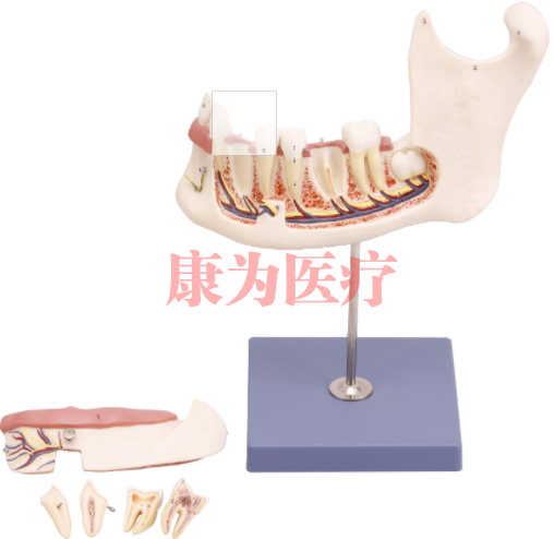 ●尖牙和第一磨牙可拔除和安裝,在第二磨牙上顯示齲齒