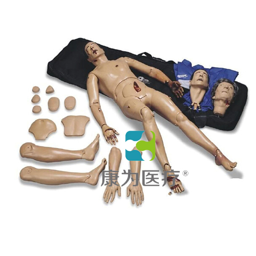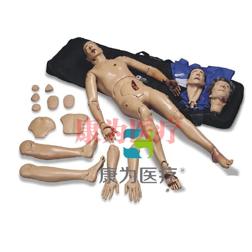 全功能創(chuàng)傷仿真標(biāo)準(zhǔn)化病人可進(jìn)行創(chuàng)傷救治和基礎(chǔ)護(hù)理訓(xùn)練,帶有三個(gè)可互換的仿真頭部(標(biāo)準(zhǔn)插管頭部、創(chuàng)傷插管頭部、綜合創(chuàng)傷頭部);全套創(chuàng)傷仿真模塊,模擬各種不同情景的創(chuàng)傷救治及護(hù)理操作。