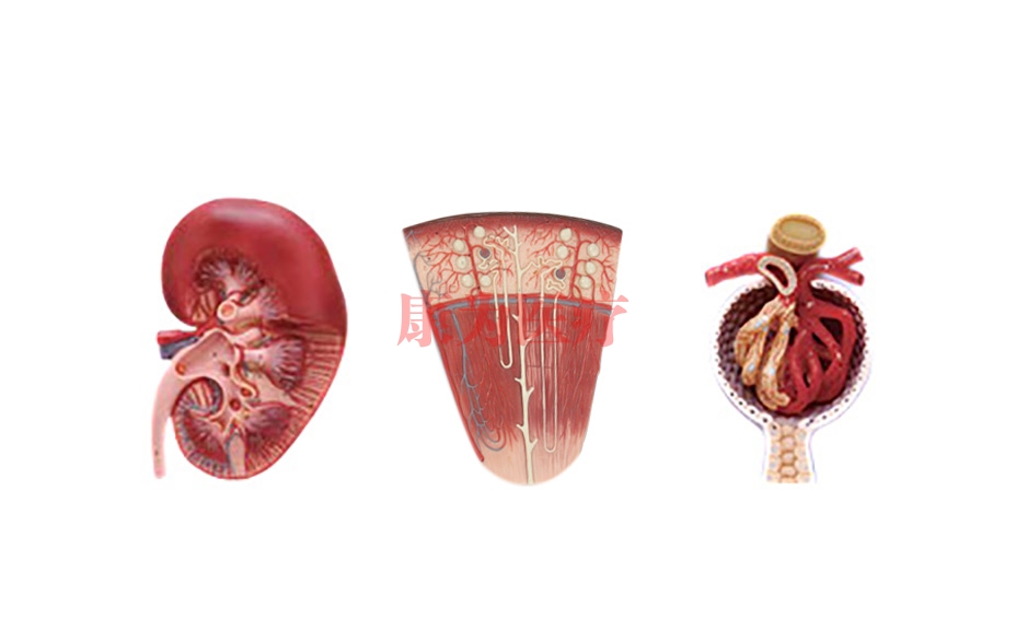 腎切面、腎單位、腎小球模型